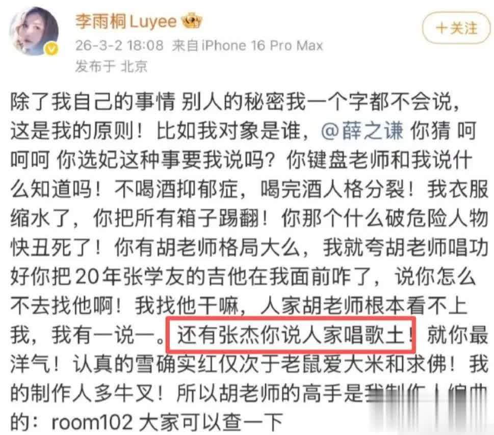 李雨桐对此的回应是直接反问薛之谦为何不敢亲自发微博,言辞颇为不客气。
