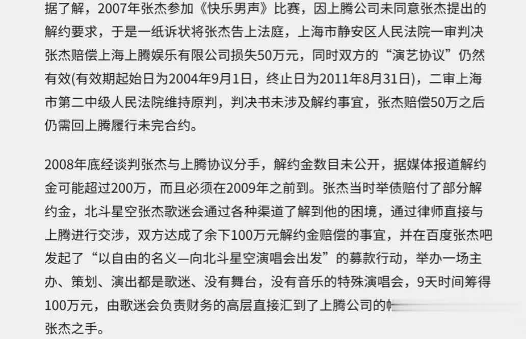 更为关键的是,在粉丝群体的大力支持下,张杰成功从那家条件苛刻的经纪公司提前解约,但此事也引发了外界对“粉丝捐款”的质疑,留下了一段不太光彩的历史。
